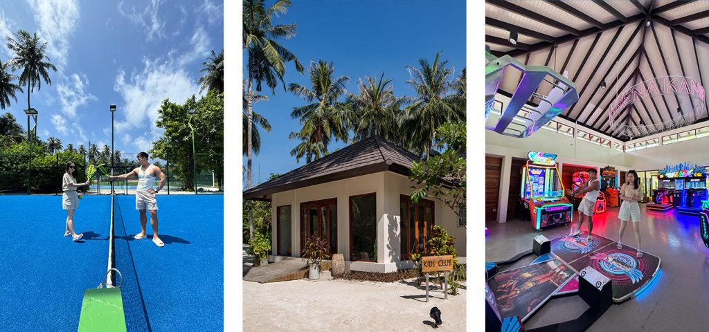而 Kanifushi 對親子最加分嘅位,係佢「唔只係有 kids club」,而係島上活動本身好完整:Kids Club 會有每日活動,加上 Clubhouse(你可以當係一個大型活動中心)— 有 floodlit tennis、paddle tennis、futsal、gym 同室內外康樂活動,落雨、太曬、想轉場,都有嘢做,對暑假帶小朋友尤其實用。